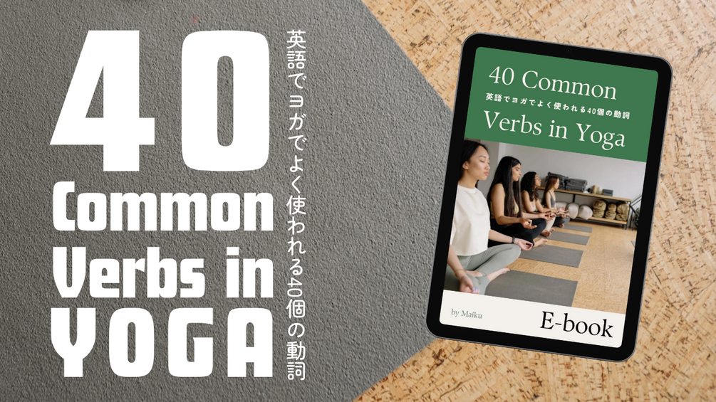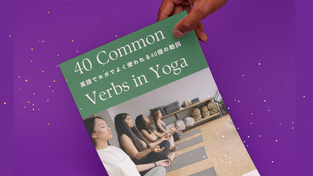 【英語でヨガを教えたい日本人インストラクターの方へ。「英語でヨガでよく使われる40個の動詞」ワークブックは、英語のヨガ指導で最も頻繁に使われる動詞を習得するための必須ガイドです。この包括的なワークブックは英語でのクラス指導に自信を持てるようにデザインされています。スキルを向上させ、活動の幅を広げましょう。】